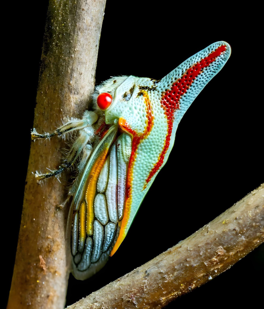 What makes the oak treehopper truly spectacular is its peculiar body structure. It sports a dramatic, often intricately shaped pronotum — an extension of its thorax that resembles anything from a sharp horn to a shield-like crest. These unique shapes serve as camouflage, helping the treehopper blend seamlessly with its surroundings or mimic thorns to deter predators. The vibrant greens, browns, and occasional iridescent hues of the oak treehopper add to its visual charm.