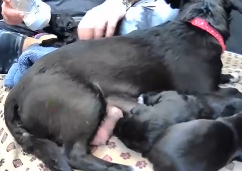 During labor, contractions will help the mother push the puppies out. Each puppy is usually born encased in a sac, which the mother will instinctively tear open. She will also lick the puppy to stimulate breathing and clean them. If she doesn’t do this within a minute, gently tear the sac open, clean the puppy’s mouth and nose, and rub it gently with a clean towel.